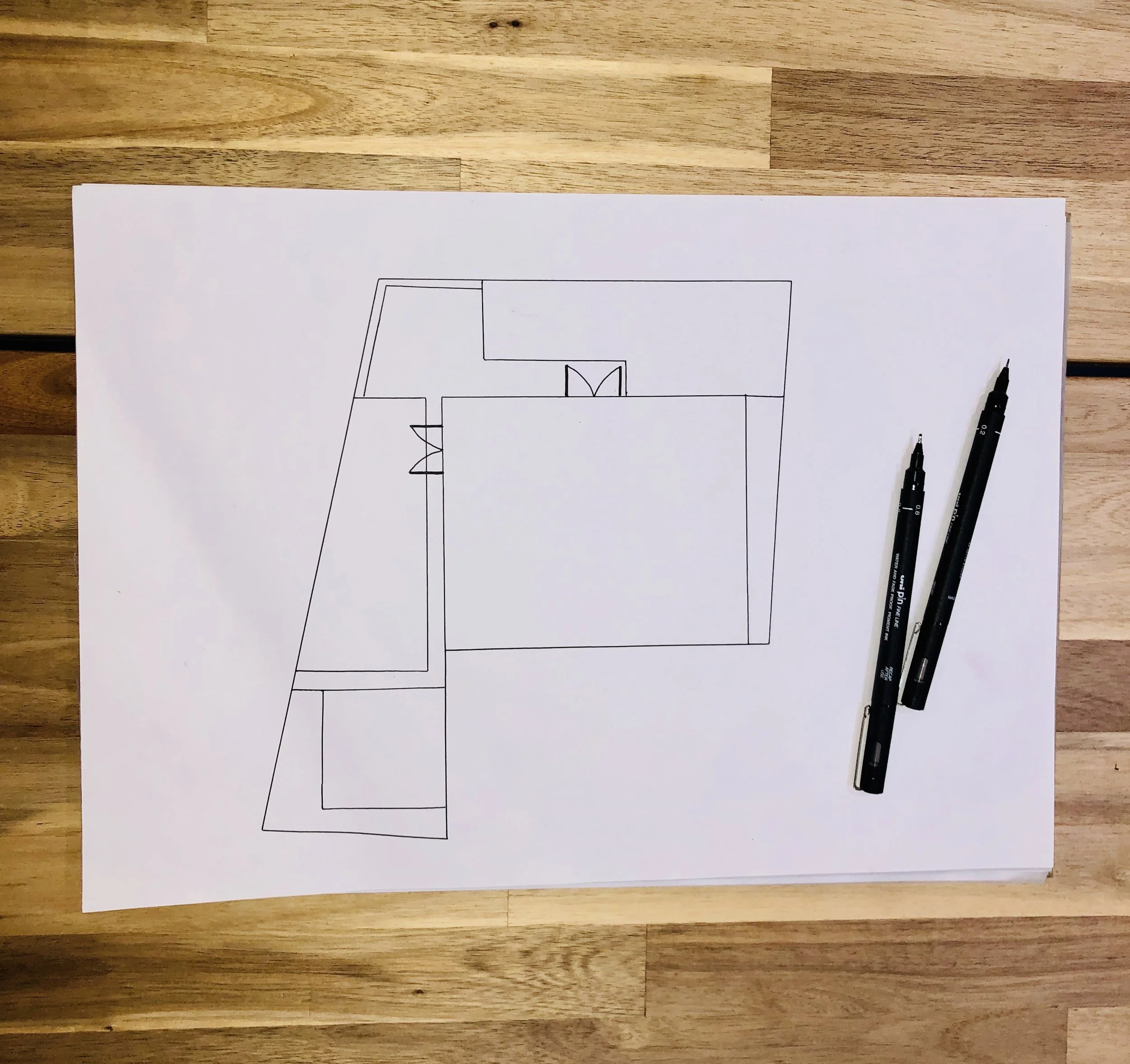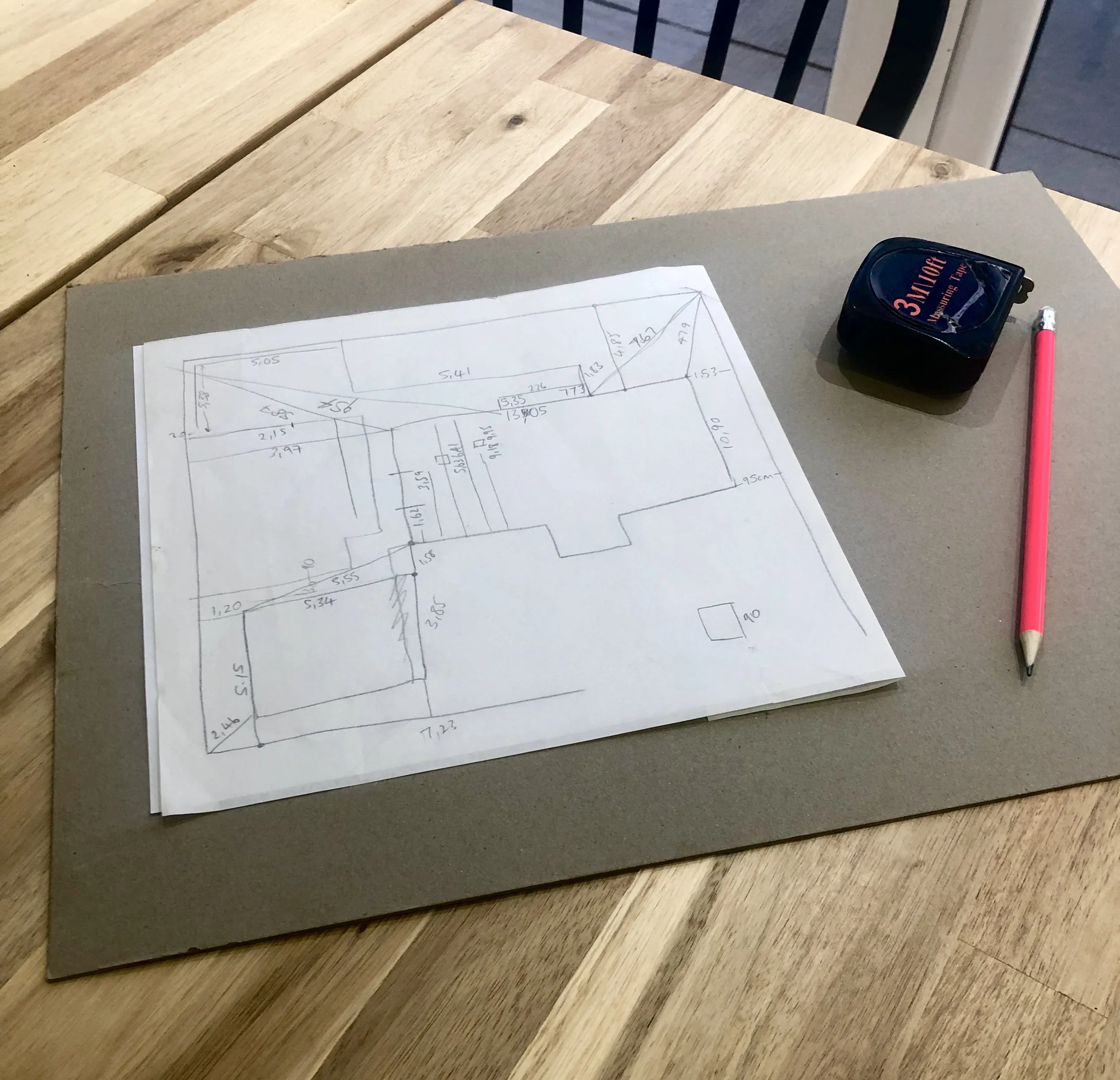 1. Roughly sketch the basic lines of your garden and house to collect all your measurements.